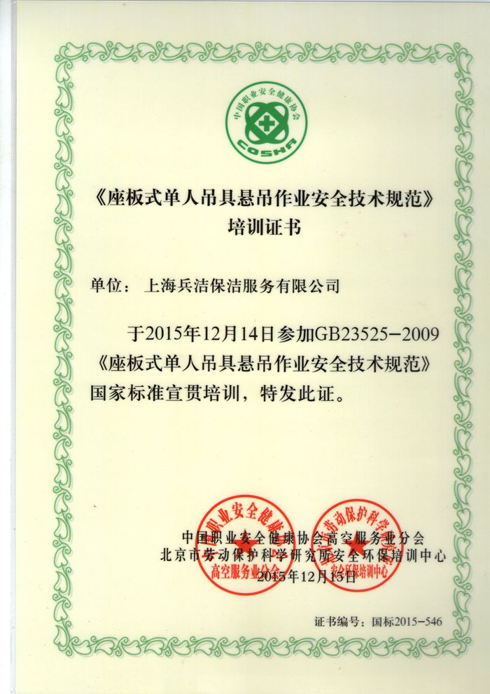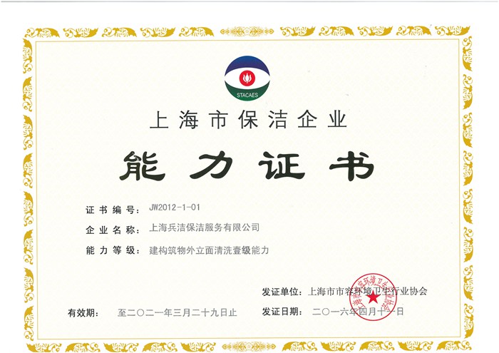 上海兵潔環(huán)境服務(wù)有限公司成立于2005年9月,專業(yè)從事外墻清洗、內(nèi)(外)墻粉刷、開荒清潔、石材翻新養(yǎng)護(hù)、外墻維修、地毯清洗,辦公樓、住宅樓、商場、工廠、賓館、醫(yī)院、展覽展示館等各類物業(yè)場所的日常保潔服務(wù)。公司現(xiàn)有員工1200余人,服務(wù)項目200多個,其中外墻清洗服務(wù)面積1500多萬平方米,日常保服務(wù)面積500多萬平方米。公司秉承“誠信務(wù)實、安全高效、吃苦耐勞、勤勉細(xì)致” 的企業(yè)作風(fēng)和“專業(yè)來自敬業(yè),服務(wù)創(chuàng)造品質(zhì)”的基本理念,全面導(dǎo)入ISO9001:2008質(zhì)量管理體系認(rèn)證證書,ISO14001:2004環(huán)境管理體系認(rèn)證證書,OHSAS18001:2007